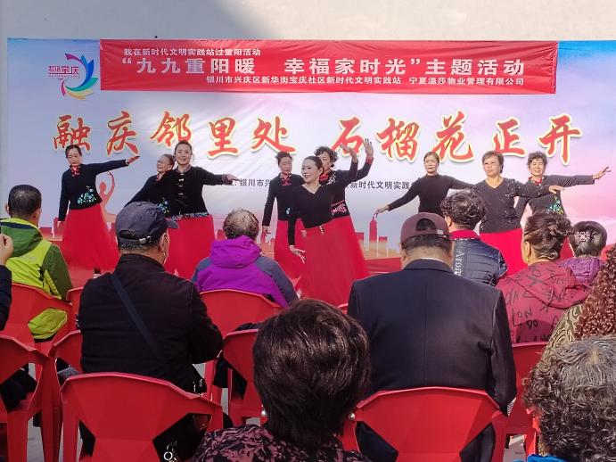 10月27日,银川市兴庆区新华街宝庆社区云翠园小区小广场暖意融融,百余位老人欢聚一堂,共庆以“九九重阳暖 幸福家时光”为主题的重阳节活动。现场通过摄影展、文艺汇演、健康义诊等多元形式,让传统佳节浸润“家”的温情,更让敬老爱老风尚深植社区。