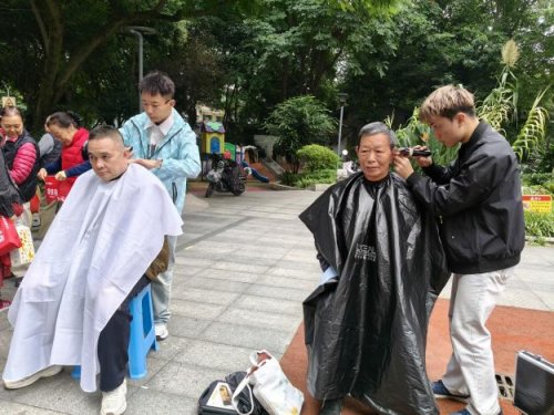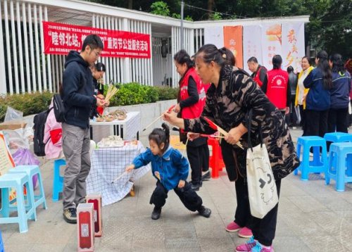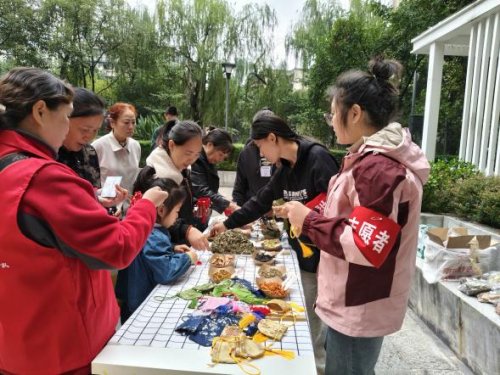 除便民服务外,现场设置丰富互动环节,增进邻里情谊。义剪区,志愿者理发师为老人修剪头发,整洁发型让老人展露笑颜;投壶、套圈环节,老人们热情参与,投掷与套圈间欢呼声不断,在轻松游戏中收获快乐、拉近距离;“红歌转转乐”环节,熟悉的红歌旋律点燃气氛,老人们随节奏哼唱、打节拍,重温激情岁月;香囊手工DIY区,老人们在志愿者指导下填充香料、制作香囊,交流技巧、分享趣事,尽显邻里和谐。