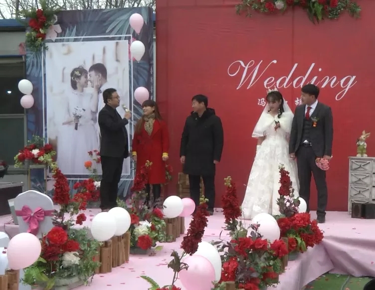将习近平新时代中国特色社会主义思想和党的方针政策通过快板、小品、歌曲等群众喜闻乐见的艺术形式穿插于婚礼过程中,在润物无声中传播新思想。